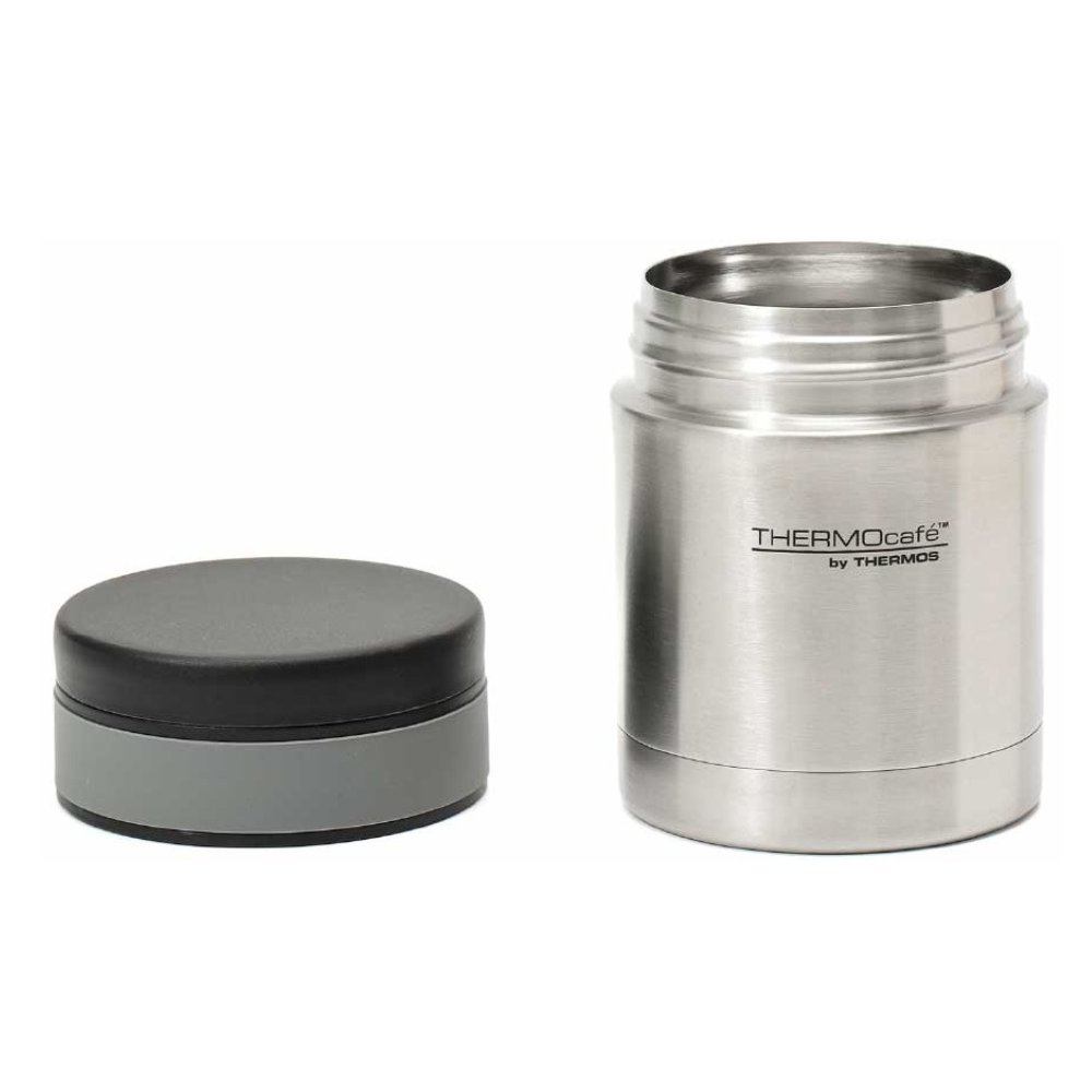 Tapa a rosca, a prueba de derrames. Incluye la cuchara de plástico reutilizable en el interior.