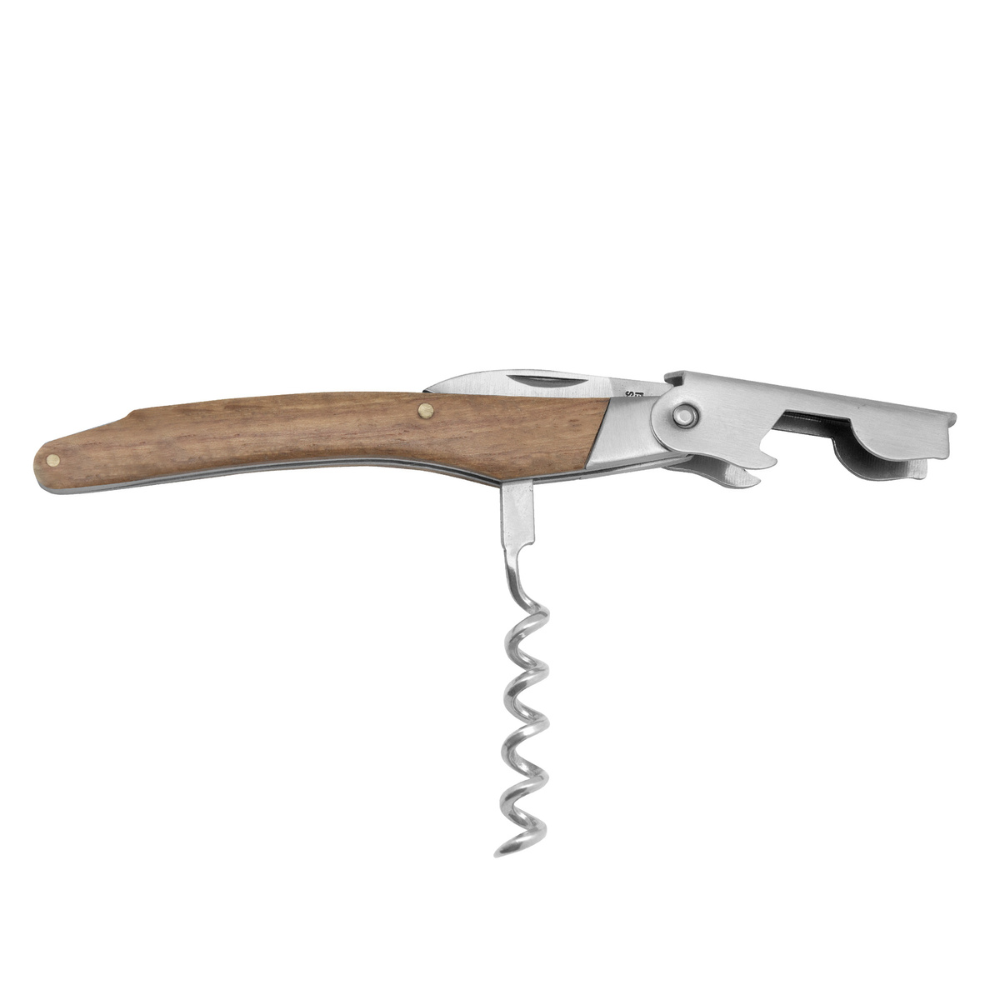 - Accesorios incorporados: sacacorchos, navaja y destapador.