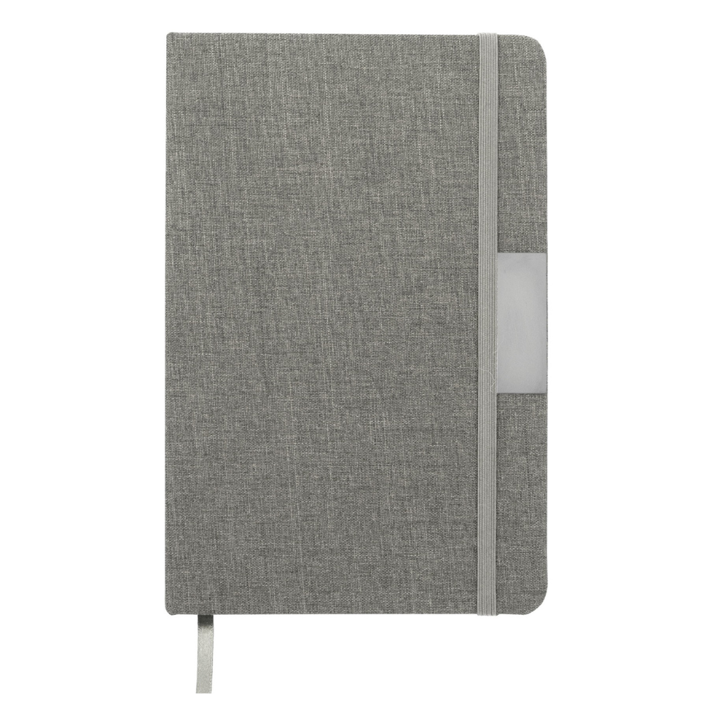 - Libreta con placa metálica. Tapa de cartón de 300g recubierta en RPET 310.
