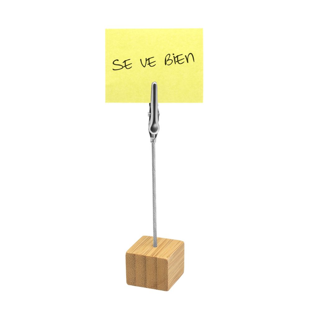 - Memo clip de escritorio con base cúbica en bambú.