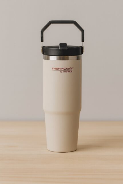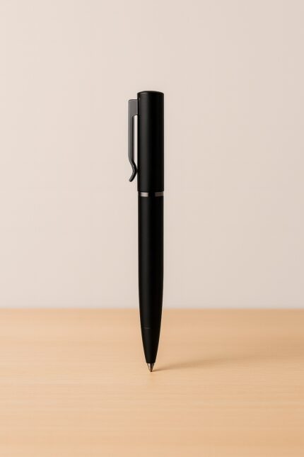 Mesa corporativa con cuaderno, lapiceras y una taza blanca.
